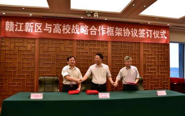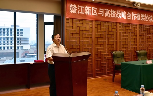 赣江新区管委会主任刘建洋在致辞中指出,与高校签订战略合作协议是深入实施创新驱动发展战略,不断强化区校合作与交流的重要举措。赣江新区将以本次签约为契机,在加快主导产业孵化转化供给、培育创新主体、培养各类人才等方面与高校深化合作,并在战略合作框架协议的基础上,牵针引线、牵线搭桥,帮助院校与企业签订“一对一”的合作协议,最大限度地释放发展红利。