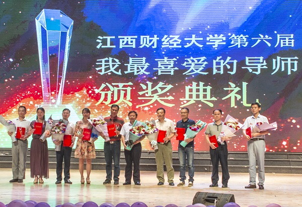 随着“青春的绽放”篇章的结束,第六届“我最喜爱的导师”颁奖典礼拉开帷幕,卢福财为“刘兴华、李霜、吴朝阳、吉伟莉、黄欣荣、曾维涛、陶春海、舒辉、廖卫东、汪志刚”等十位 “我最喜爱的导师”颁发了奖杯和奖状,学生代表为导师献上了盛满敬意的鲜花。颁奖过程中,学生给予导师的颁奖词充满着学生对老师真挚的爱,浓浓的师生情谊感动着在场的每位观众。