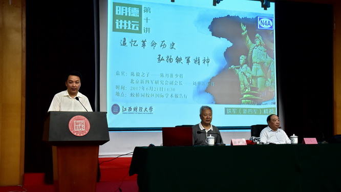 6月21日,开国元勋陈毅之子陈丹淮将军、北京新四军研究会副会长刘华苏将军做客我校明德讲坛第10讲,为我校师生宣讲新四军精神。