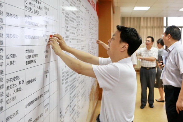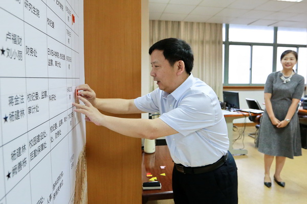 根据省委第七巡视组要求,截至26日晚,我校已经完成5项巡视整改任务。根据“挂图作战、对账销号”落实整改工作机制,王乔、卢福财、蒋金法、杨建林分别为自己作为牵头责任领导完成的整改项目“插”旗销号,标志着我校推进巡视整改工作落地见效取得阶段性成果。