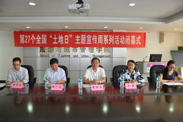 6月26日,第27个全国“土地日”主题宣传周系列活动闭幕式在我校麦庐园图文信息楼举行。江西省土地学会理事长张祥连、江西省土地学会副理事长兼秘书长陈广远、江西省土地学会办公室主任刘哲、旅游与城市管理学院党委书记王琪出席了此次闭幕式,闭幕式由旅游与城市管理学院邹秀清副院长主持。学院师生50余人参加。