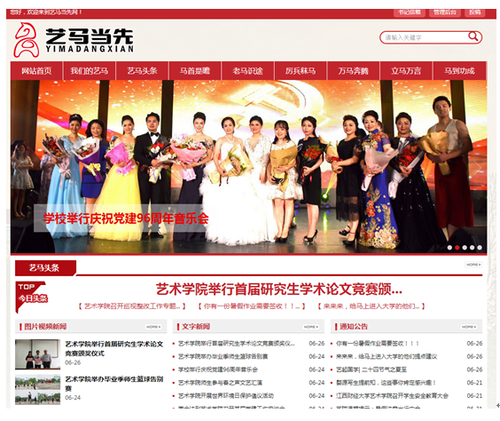 日前,艺术学院党建与思政网——艺马当先投入试运行。艺马当先网为艺术学院党委重点打造的学生活动和管理平台,是首个学院层面思政网站,是艺术学院党建与思政工作展示的重要载体,筹划之初就受到广泛关注。日前,该网站完成设计,进入试运行阶段。