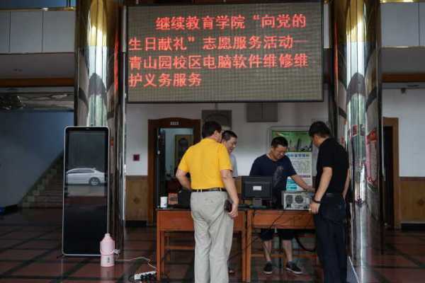 7月1日上午,继续教育学院党总支在青山园校区开展“向党的生日献礼”志愿服务活动,为师生提供电脑维修和软件维护的义务服务。