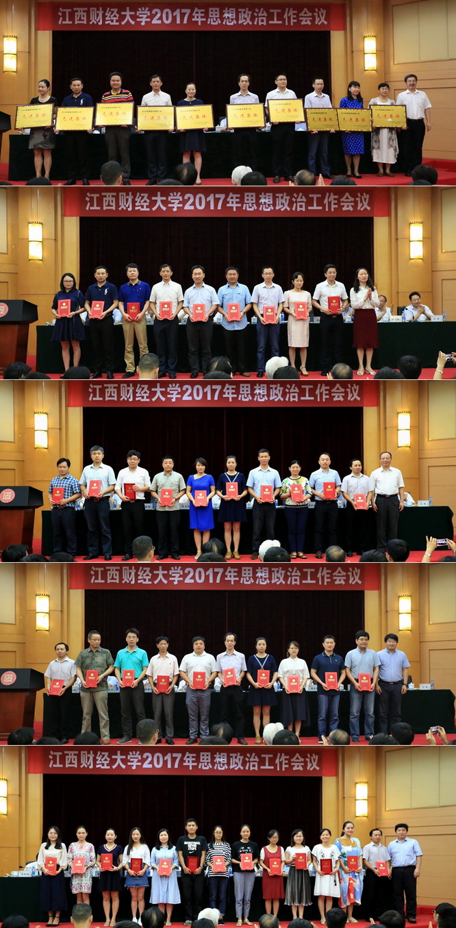 会议表彰了2016年度宣传思想工作先进集体和先进个人、辅导员年度人物、优秀班主任和辅导员(班主任)职业能力大赛获奖个人。校党委常委、副校长蒋金法、刘小丽,校党委常委、纪委书记杨建林,副校长邓辉,校党委常委、副校长王小平分别为以上先进集体和个人颁奖。校党委常委、副校长欧阳康,校党委常委、党办校办主任袁雄分别宣读有关表彰决定。