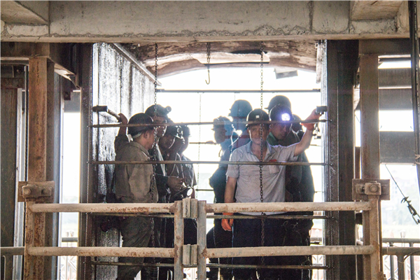 进入矿区前,吴继锋请来产区安全员为大家介绍相关注意事项,并告诫大家“安全来自长期警惕,事故源于瞬间麻痹”。第一站来到监控调度室,管理员向大家简述厂区内的工作流程,并介绍新庄矿的生产系统分为采矿系统及选矿系统,他表示团队将努力创造“学习型、安全型、清洁型、节约型、和谐型”班组。随后观察团便在出井口迎接换班的矿工们,在长达十个小时的工作后,矿工们出井后呼吸着新鲜的空气和沐浴着明媚阳光。尽管他们一个个满身尘土,但是他们乌黑的眼球中炯炯有神,布满煤灰的衣服渲染着他们的疲惫,也是他们被称为“黑色脊梁”的真实写照。