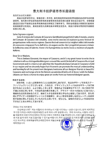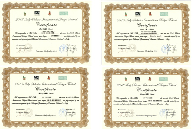 本次意大利萨兰托国际设计节作品征集大赛旨在推动世界设计产业蓬勃发展,为全球设计从业者提供相互交流、学习和提高的国际平台。大赛共收到参赛作品1万余件,参与国家有意大利、德国、法国、日本、韩国和瑞士等10多个国家。大赛奖项分五大类别:服装设计、数字媒体艺术、视觉传达、产品设计和环境设计,每个类别设金奖1名、银奖2名、铜奖4名和优秀奖若干。能够获奖皆为出类拔萃的设计作品。