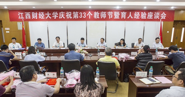 9月9日,我校庆祝第33个教师节暨“迎接党的十九大 做好学生引路人”育人经验座谈会。校领导王乔、卢福财、蒋金法、刘小丽、邓辉、阙善栋、欧阳康、袁雄出席座谈会。座谈会由蒋金法主持。