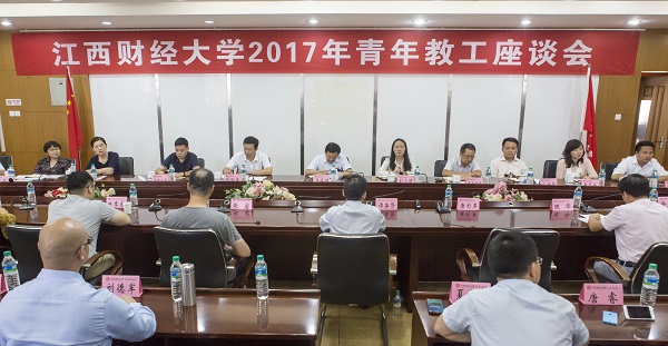 9月13日下午,学校召开青年教师代表座谈会,校长卢福财出席会议并讲话,副校长刘小丽、欧阳康出席,党办校办、宣传部、人事处、工会、团委、教务处、科研处等部门负责人参加。来自全校各单位的30余名青年教师代表参加了座谈会。座谈会由学校青工委副主任王昊主持。