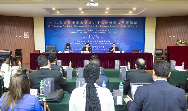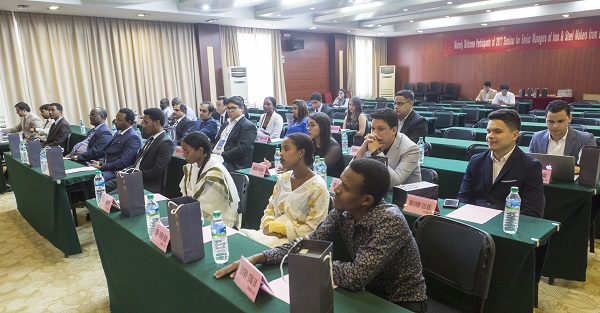 王小平在致辞中指出,本次研修班旨使学员们了解到当下中国钢铁工业的现状、钢铁产业的人力资源管控以及转型升级等状况,同时加强中国与学员所在国家有着更加有力、长远的沟通交流,结下深厚的友谊,在钢铁行业能有更多合作。“这是思想与智慧的碰撞,这是理论与实践的交汇”王小平一段慷慨有力的陈词将会议推向了高潮。“我的朋友们,你们不久将启程回到自己的祖国,我衷心的希望你们能带着从本次研修班中的收获去在你们国家的钢铁工业上做出更深远的贡献,并成为与中国沟通合作的桥梁!”