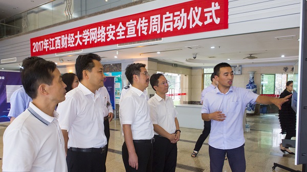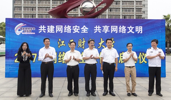 2017年江西财经大学网络安全宣传周启动仪式21日举行。校党委副书记蒋金法出席仪式并宣布2017年江西财经大学网络安全宣传周启动。校党委宣传部、网络信息管理中心、学工处、校团委、保卫处等部门负责人及200余名学生参加启动仪式。校党委宣传部部长王金海作动员讲话。他强调,广大师生要恪守道德底线、职业操守,自觉抵制不良信息,辨别网络陷阱,不参与有害和无用信息的制作和传播,拒绝传播违反国家法律、影响国家安全、破坏社会稳定的谣言和信息。网络通讯社社长、金融学院学生陈启颜宣读2017年江西财经大学网络安全宣传周倡议书。现场还举行了网络安全周签名活动和网络安全宣传体验活动。