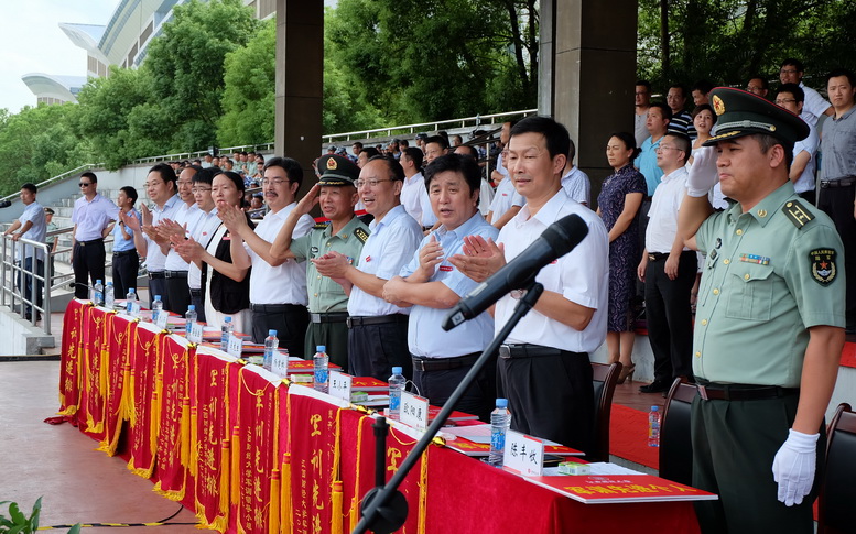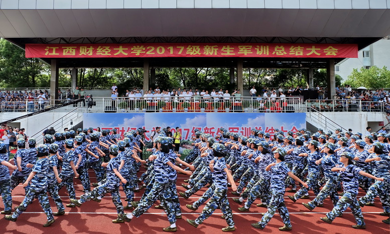 9月25日下午,2017级新生军训总结大会在麦庐园田径场举行。“没有共产党就没有新中国”的嘹亮歌声与军事汇报表演的喊杀声回荡不息,全体参训新生以优异的训练成绩向党的十九大献礼。校党委副书记蒋金法,副校长刘小丽,纪委书记杨建林,副校长邓辉、王小平、阙善栋、欧阳康、袁雄,陆军步兵学院军训办主任马龙生大校、军训团团长陈丰收中校出席,军训领导小组全体成员,各学院党委、党总支书记,跟训老师参加了总结大会。大会由副校长袁雄主持。