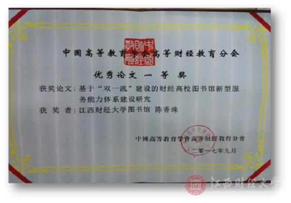 近日,由中国高等教育学会高等财经教育分会图书资料协作委员会主办、兰州财经大学承办的“中国高等教育学会高等财经教育分会图书资料2017年年度工作会议”在兰州财经大学隆重召开。 来自教育部高教司、全国45家财经类院校等单位的100余位代表齐聚兰州财经大学,共同探讨“‘双一流’建设背景下财经高校图书馆新型服务能力体系建设”。 我校图书馆郑淑娟副馆长和陈香珠老师出席会议。本次会议共收到来自全国学者论文70余篇,经专家委员会专家评审,我校图书馆陈香珠老师撰写的论文《“双一流”建设背景下财经高校图书馆新型服务能力体系建设研究》荣获优秀论文一等奖。