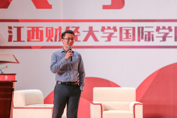 国际学院“UP计划”导师、大新银行南昌分行行长刘彦从“大学精神”、“金融视野”、“人生选择”三个方面进行了分享,建议广大学子在培养国际视野的同时保持家国情怀,将本土智慧与国际思维相结合,拓宽基础、学深专业,健康体魄、坚强意志。