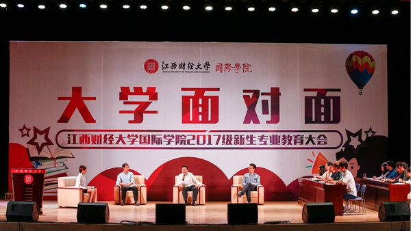 “三位大咖与我们的零距离沟通激发了我对专业的认同与热爱,让我们体会到了学院对新生的重视和关怀,也使我更加明白会计、金融、国贸在现实生活中的价值与意义,促使我们去进行更加深层、多维的职业生涯规划思考……”9月28日晚,蛟桥园大礼堂内掌声雷动,不绝于耳,国际学院2017年“大学面对面”新生专业教育大会在这里举行,国际学院院长杨慧、党委副书记夏贤锋、学院教师代表、2017级全体新生、2014、15、16级部分学生共计六百余人参与了大会。