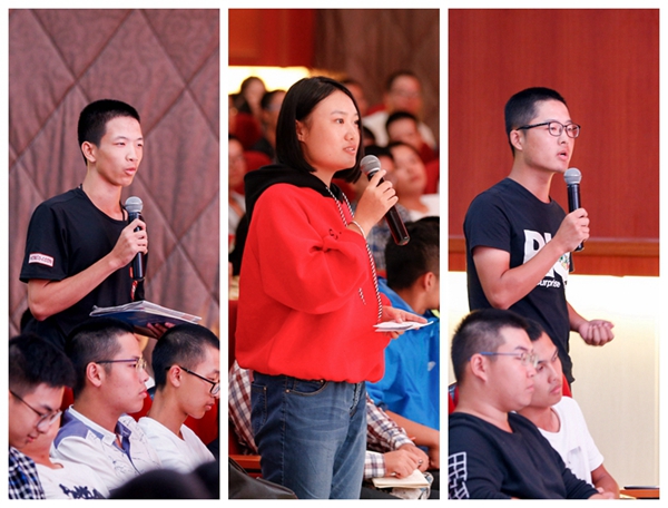 来自四个年级、四个专业的青年代表及观众对分享嘉宾进行了提问,围绕“跨界人才的核心竞争力”、“专业与社交的有效融合”、“专业考证的选择”、“理论到实践的转换”等问题与嘉宾进行了交流。
