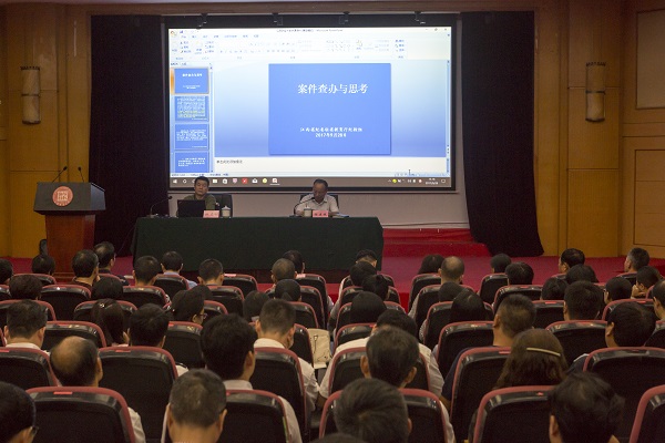 杜志刚组长结合自己多年来在反腐倡廉工作中积累的丰富经验,运用大量的视频资料、鲜活的案例,为我校干部和教师呈现了一场精彩的报告,博得台下阵阵掌声。他从全省教育系统案件受理及处理情况;全省教育系统案件呈现出的“三升三降”特点及对高校存在着的诬告乱告案件的剖析三个方面详细剖析了近年来江西高校教育系统发生的违法违纪行为,告诫学校教育工作者要懂得自重、懂得珍惜、懂得敬畏。