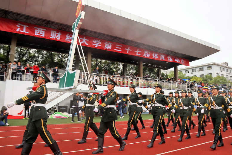 庄严的升旗仪式结束后,卢福财宣布江西财经大学第三十七届运动会正式开幕。