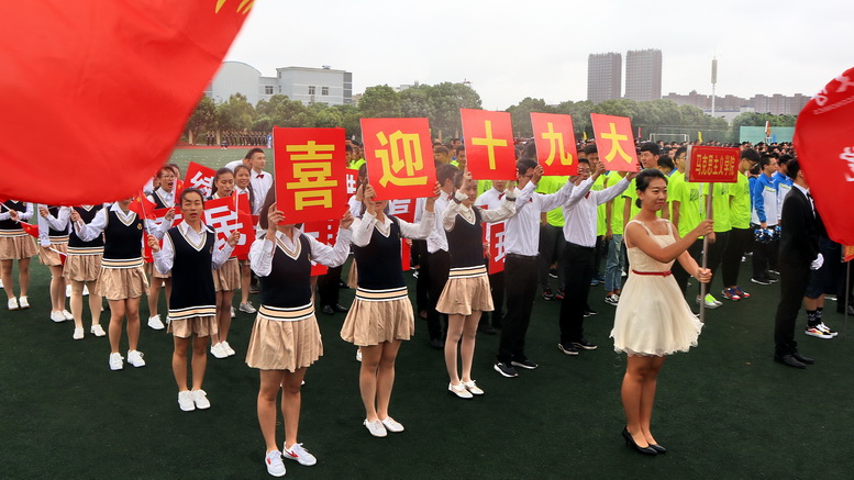 伴随激昂的《运动员进行曲》,在国旗队、校旗队、会徽队的引导下,24支方队喊着嘹亮的口号依次通过主席台,展示出奋发向上的精神状态,赢得主席台和看台上师生热烈掌声。