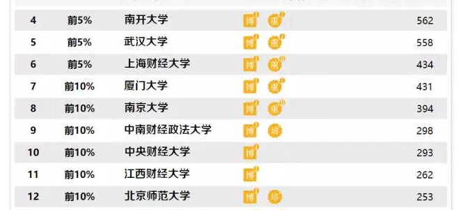 2017“中国最好学科排名”于12日发布,我校理论经济学位列全国第11名,百分位段前10%;统计学学位列全国第14名,百分位段前25%;应用经济学位列第20名,百分位段前10%;法学位列全国第33名,百分位段前25%;社会学位列全国第38名,百分位段前50%;工商管理位列第39名,百分位段前25%;管理科学与工程位列第42名,百分位段前25%;新闻传播学位列第44名,百分位段前50%;公共管理学位列第59位,百分位段前50%。