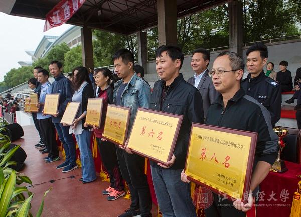 体育学院院长郑志强宣读了本次运动会的比赛成绩。本届运动会共有765人报名参加田径项目比赛,5320人报名参加集体项目比赛。全体运动员经过激烈的拼搏,各个项目都取得了优异的竞赛成绩。获得教工团体前八名的单位分别是工商管理学院、旅游与城市管理学院、图书馆、附中、保卫处、信息管理学院、机关与艺术学院,现代经济管理学院获得教工“体育道德风尚奖”。获得学生团体前八名的学院分别是国际学院、会计学院、工商管理学院、金融学院、财税与公共管理学院、经济学院、旅游与城市管理学院与统计学院。
