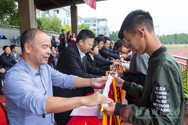 主席台就坐领导分别为获奖集体与个人颁奖,同学们的欢呼声此起彼伏。