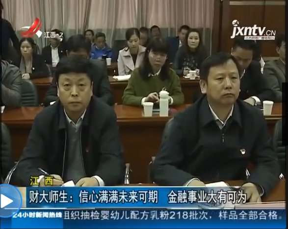 江西电视台以题为《财大师生:信心满满未来可期 金融事业大有可为》对我校进行了报道。电视台还对金融学院院长汪洋、金融学院大四学子张禄进行了专访。(相关链接:http://v.jxntv.cn/2017/1018/8710200.shtml我校的报道在从5分42秒开始)