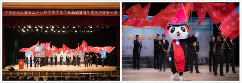 开幕式播放了第二十八届学生学术节主题宣传片,展示了会旗、会徽和以国宝大熊猫为原型的吉祥物“创创”。校大学生艺术团主持队进行了学生学术节主题情景朗诵《学术之歌》。