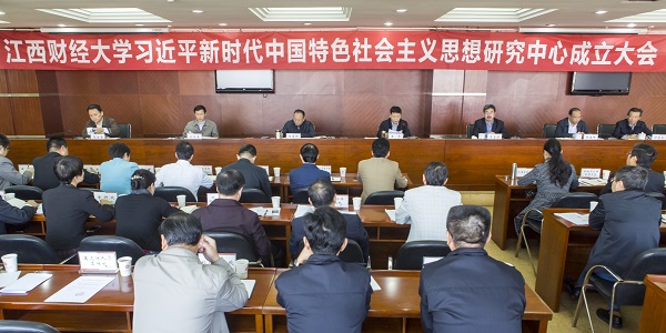 阙善栋在会上宣读《关于成立江西财经大学习近平新时代中国特色社会主义思想研究中心的通知》。