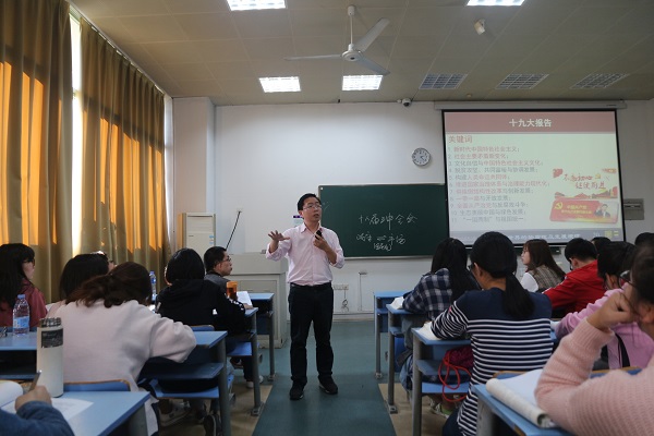 10月26日下午2:00,马克思主义学院在蛟桥校区1103教室举行公开教学课活动,由青年教师舒前毅博士主讲。这是本学期继上次朱清华博士进行公开教学课后的第二次公开教学活动。副校长邓辉和校教学督导蔡定萍教授也亲临现场指导。舒前毅博士结合党的十九大报告,运用马克思主义辩证法中矛盾原理进行深入解读,特别采用师生互动、翻转课堂的方式重点讲授经济发展中的矛盾、改革开放中的矛盾、人类命运共同体的矛盾和社会主义初级阶段的主要矛盾等四个方面的内容。