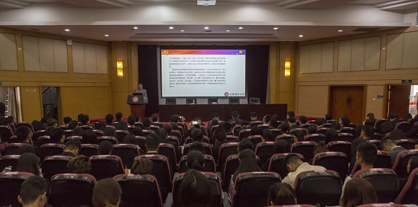 蒋金法进行了“新时代、新思想的新落实——十九大报告提出的经济新思想及社会主要矛盾的转化”的十九大精神主题宣讲。蒋金法从十九大经济新思想、社会主要矛盾的转化、社会主要矛盾解决方略、新时代的新思想更要抓紧落实四个方面宣讲了党的十九大精神。他鼓励我校学生要以学习贯彻十九大精神为动力,以习近平新时代中国特色社会主义思想为指引,结合自身专业特点和特长,积极以实际行动来学习领会贯彻党的十九大精神。