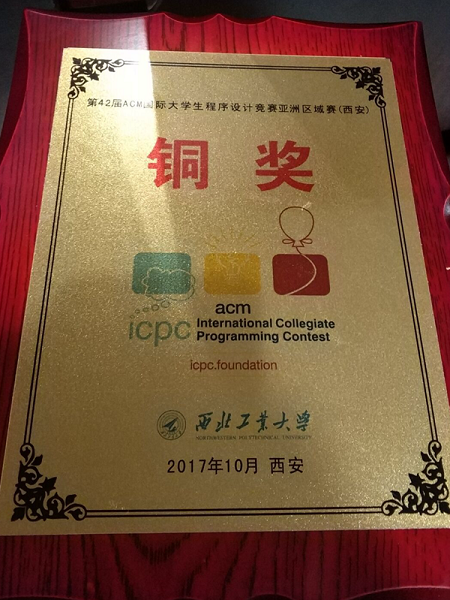 10月28日至29日,第42届ACM国际大学生程序设计竞赛亚洲区域赛(西安站)现场赛在西北工业大学举行,共有来自清华大学、北京大学、复旦大学、武汉大学等近200多所高校的345支队伍入围本次现场赛。经过激烈角逐,我校软通学院学生陈圣鑫、潘黎和胡宇超组成的“丘欸丘”代表队在尹爱华老师的指导下,凭借扎实的专业知识和出色的发挥,获得一项铜奖,实现我校ACM集训队在ACM国际竞赛亚洲区域赛的重大突破。