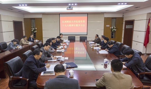 卢福财、蒋金法、杨建林、邓辉、王小平分别结合分管的工作或专业谈了学习体会。他们表示,要把学习贯彻党的十九大精神与推动学校改革发展相结合,与自己分管的工作相结合,与教学科研实际相结合,打破制约发展的瓶颈,解决发展中的问题,把十九大精神学通、弄懂、做实,着力提高人才培养质量,推动学校事业科学发展。