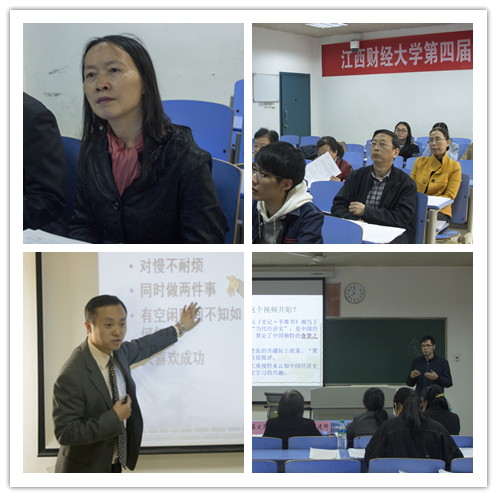 比赛程序、内容和形式完全参照全国高校青年教师教学竞赛规则,分别从教学设计、课堂教学、教学反思等三个方面对选手进行考核评分。参赛教师们准备充分、讲授内容精彩生动,赢得专家好评。教学比赛结束后,严武教授、江建强教授和谭光兴教授分别担任三个小组的组长,对教师教学过程中的表现进行了点评。在充分肯定选手良好的表现后,专家们主要针对讲课中的不足进行详细点评,指出讲课中的教态、语态、体态存在的问题,还对讲授的内容、教学设计、教学反思存在的问题进行评议。谭光兴教授曾两次担任江西省青年教师教学竞赛的评委,他着重从比赛的角度进行点评,分析选手比赛中的不足;江建强教授是学校教学督查组组长、严武教授也多次担任学校的教学竞赛的专家评委,他们着重从如何提高教学质量方面进行点评。青年教师们通过这次比赛,互相取长补短,还从专家的点评中收到了有益的启示。