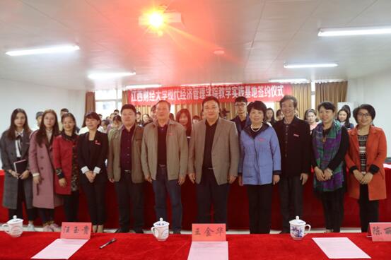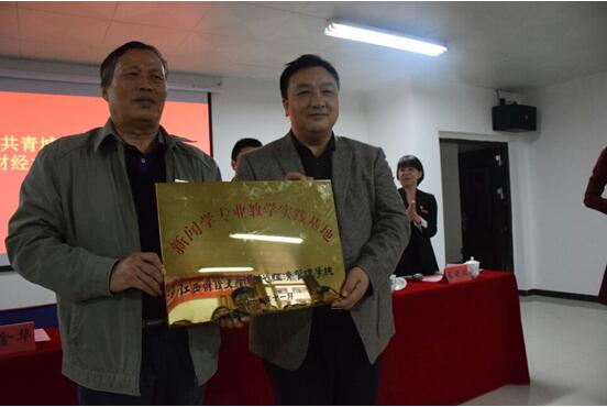 王金华代表学院授予共青城全媒体中心“江西财经大学现代经济管理学院新闻学专业教学实践基地”铜牌。