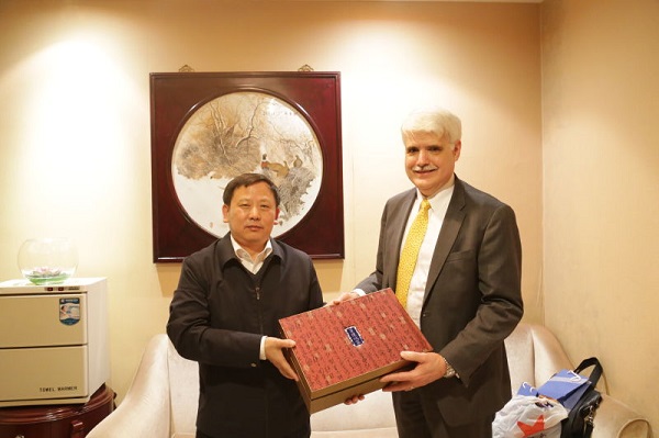 会谈中,卢福财首先对Lou Reinisch一行的来访表示热烈欢迎,为两校过去19年成功合作所取得的丰硕成果表示祝贺!随后, 宾主双方共同回顾了两校的合作历程, 双方都为我校杰出校友,纽约理工终身教授、管理学院副院长Scott Liu为两校合作做出的积极贡献表达了由衷感谢。Lou Reinisch副校长表示,江财是纽约理工重要的合作伙伴,这也就是他首次中国之行便选择了访问江财的主要原因,期待两校在继续做好中美MBA项目的基础上,能将合作拓展到新的项目与领域。最后,双方在师资培养、行政管理干部顶岗实习方面的合作达成了共识。