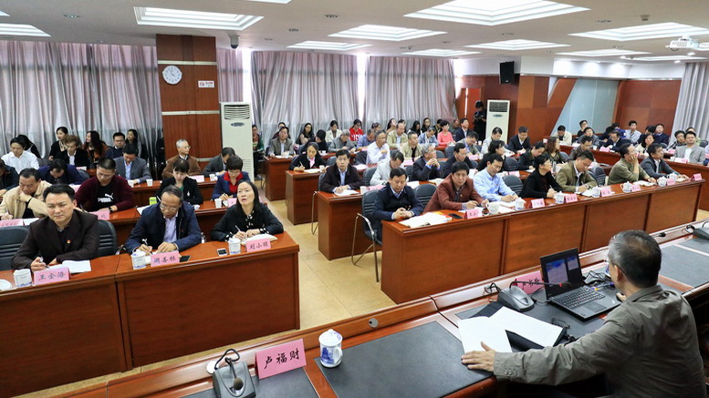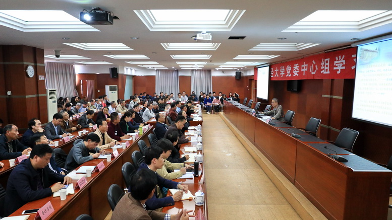 11月9日下午,校党委理论学习中心组举行今年第十次集体学习会议,中共中央党校科学社会主义教研部原主任、教授、博士生导师严书翰应邀作十九大精神专题辅导报告。校党委副书记、校长卢福财主持会议。