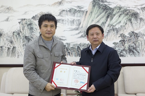 11月13日,新华通讯社江西分社社长、分党组书记刘健一行3人来访我校,校长卢福财会见了来宾。