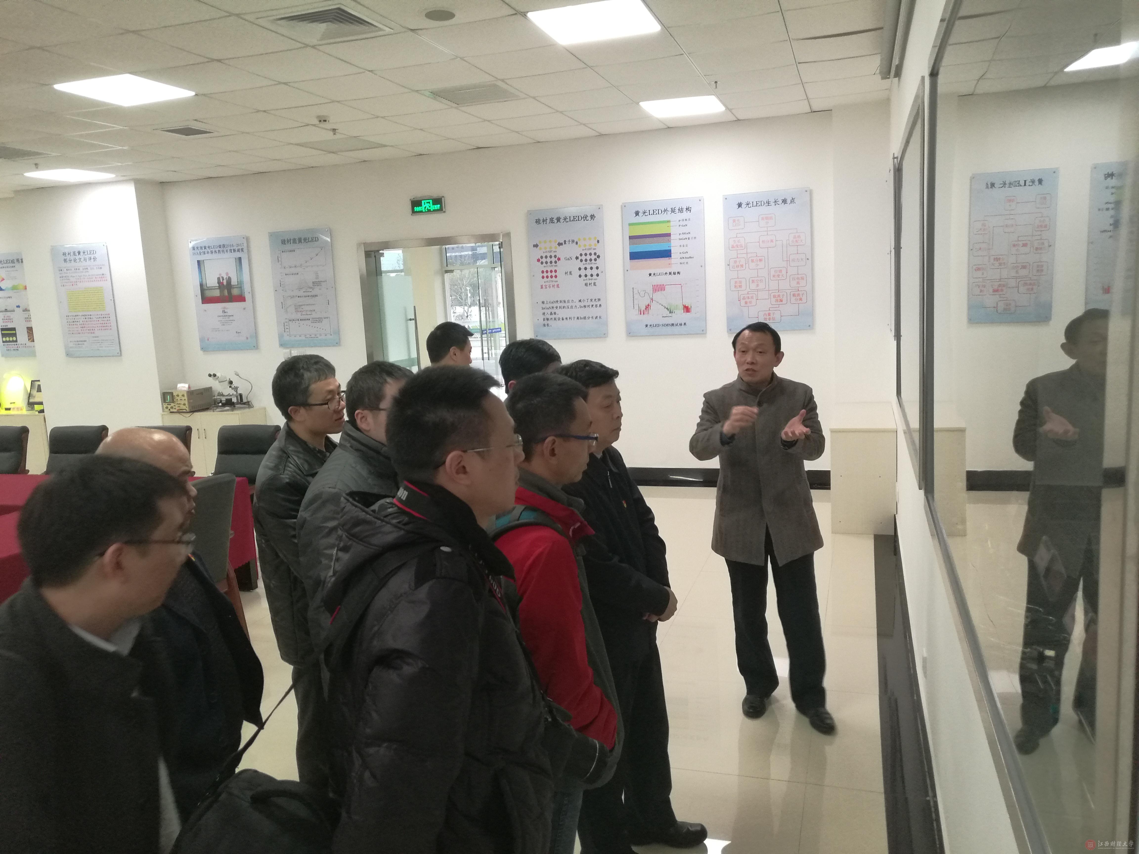 南昌大学副校长、工程中心主任江风益教授热情接待了学习考察团,表示接待过很多来访,但是作为党支部的主题党员活动的学习考察还是第一次。党支部全体党员现场参观学习考察了中心的科研和成果展示,并围绕十九大的科教精神进行了座谈学习交流。