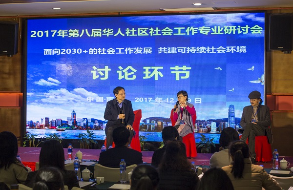 12月9日至11日,由香港社会工作人员协会与我校联合主办的第八届华人社区社会工作研讨会顺利召开。来自新加坡、日本、香港以及来自中科院、复旦大学、南开大学等国内外的130余位学者、社工工作机构领导人参加了大会。其中,参会的太平绅士包括吴水丽先生、黎永开先生、梁佩瑶女士。