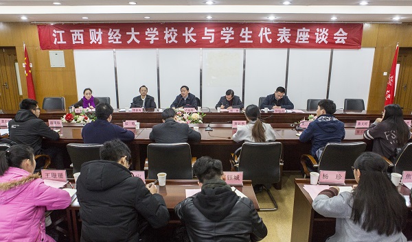 12月13日下午,校长与学生代表座谈会举行。校长卢福财出席座谈会并回答学生提问。学工处、教务处、团委、后勤保障处负责人以及三十余名学生代表共同参加会议。会议由学工部部长郑赟主持。