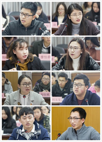 会上,二十名余名学生代表发言提问,问题涉及科研竞赛、专业学习、职业规划、志愿服务等多个方面。学生代表的范围涵盖了从大一到研究生的不同年级。学生代表们针对创业过程中学校能给予的平台支持、科研竞赛中希望有资深老师指导、考研与就业该如何抉择自己以及职业生涯规划等方面提出疑问。