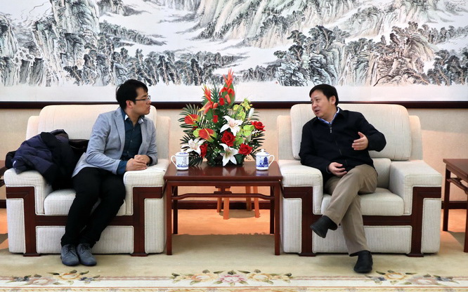 1月4日上午10点,校长卢福财教授在蛟桥南区迎宾厅亲切会见腾讯公司区域总编辑陈博先生一行。