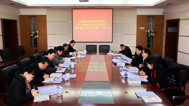 1月14日下午,校党委常委班子2017年度民主生活会专题学习暨校党委理论学习中心组2018年第一次集体学习会举行。校党委书记王乔出席会议并讲话。校党委副书记、校长卢福财,校党委常委、副校长刘小丽,校党委常委、纪委书记杨建林,校党委常委、副校长王小平、阙善栋、欧阳康,校党委常委、组织部部长许基南,校党委常委、宣传部部长王金海,校党委常委、统战部部长彭清宁参加会议。