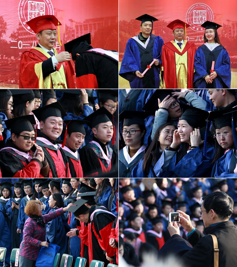 毕业典礼在嘹亮的校歌声中圆满结束。随后,校长卢福财主持了2017届研究生学位授予仪式,并逐一与毕业生合影留念。