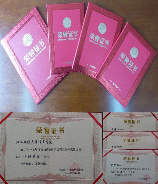 1月14日,江西省红十字会应急救护培训中心授予我校体育学院2017年度组织工作先进单位荣誉称号,全省仅有3所高校的相关直属部门获得了该项表彰,从专业角度肯定其为所属高校的大学生应急救护培训工作作出的贡献。同时,我校王建飞、于璐晗、柳华斌三位同学获得先进个人称号。