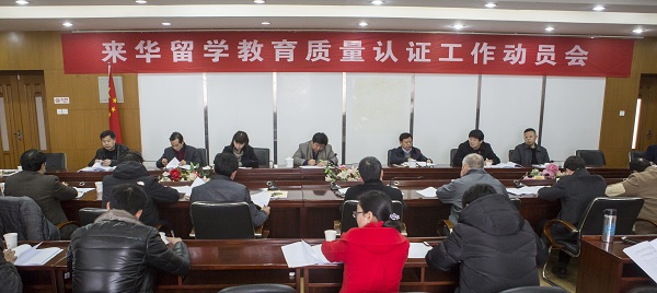 1月18日下午,我校召开了2018年来华留学质量认证动员会,标志着我校来华留学质量认证工作正式启动。校长卢福财、副校长邓辉出席会议并发表讲话,副校长王小平主持会议。