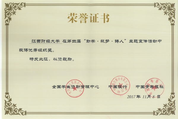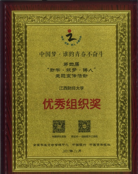 这也是我校第二次获得“助学·筑梦·铸人”主题征文系列宣传活动的“全国优秀组织奖”。2016年,我校党委副书记蒋金法教授及学工部郑赟部长、刘志蓉副处长还特地代表江西参加了教育部在北京召开的高校资助育人工作座谈会和颁奖典礼。(图文/黄应足 编辑/匡琳)