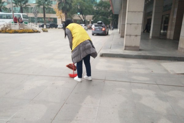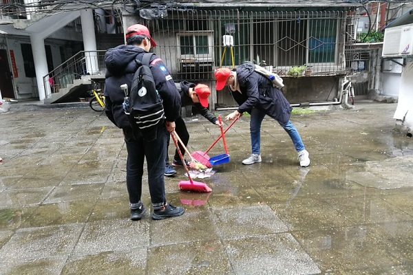 为了让老人们在空巢独居的小区中能有一个舒适的居住环境,志愿者们决定对老人所居楼层开展大范围的清扫。志愿者们在应天寺社区服务站领取工具后便开始清扫活动,三人一组至不同的单元楼打扫楼梯。在一丝不苟地打扫完楼梯后,志愿者们还冒雨打扫了社区庭院,并在中午12点之前结束了清扫。在打扫期间老人们热情地与志愿者们交谈并表达谢意,令志愿者们在恶劣的天气中仍感到暖意萦绕。