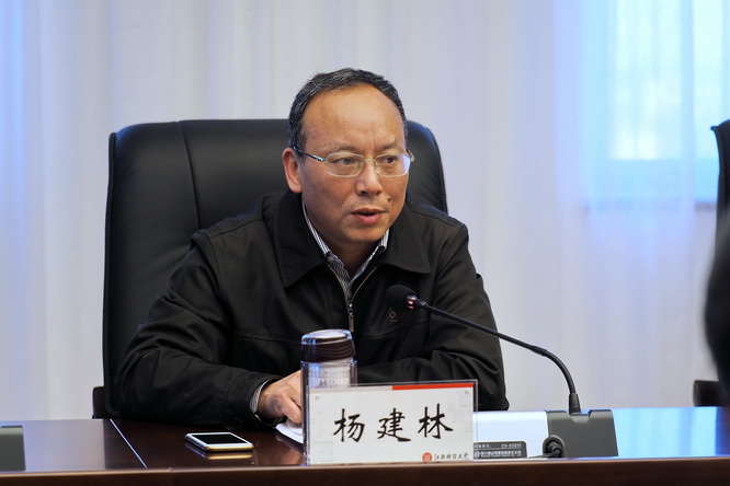 杨建林首先进行了廉政谈话。他结合学校工作,举例子,谈观感,从提高政治站位、全面从严治党和坚决守住底线三个方面启发大家。谈到做廉洁自律的表率,坚决守住底线,他要求大家牢牢守住政治底线,时刻与以习近平同志为核心的党中央保持高度一致;牢牢守住精神底线,理想信念不能滑坡;牢牢守住用权底线,时刻牢记权力是为广大师生服务的,决不能以权谋私;牢牢守住利益底线;牢牢守住生活作风底线。