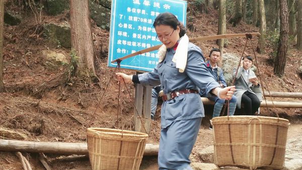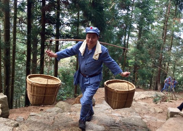 在体验式教学环节,学员们重走红军路和朱毛红军挑粮小道,学员们挥汗如雨,体验井冈山根据地军民生活的艰辛和斗争的残酷,也同时在心灵上接受红军“艰苦奋斗、身先士卒”精神的洗礼。